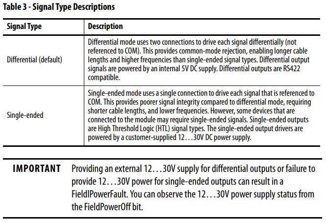 The encoder output module supports differential and single-ended signal