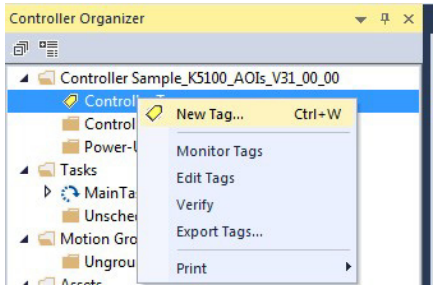 In the Controller Organizer, right-click Controller Tags and click New Tag.