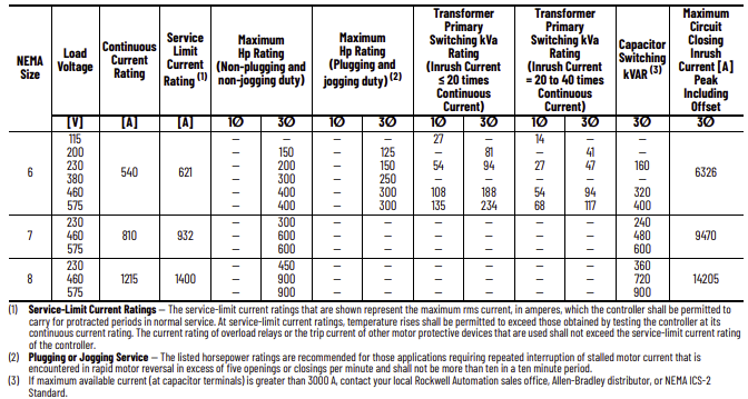 What are the NEMA Sizes / Ratings for Contactors and Starters? This article provides a chart that shows the Electrical Ratings (Sizes) for NEMA Contactors and Starters